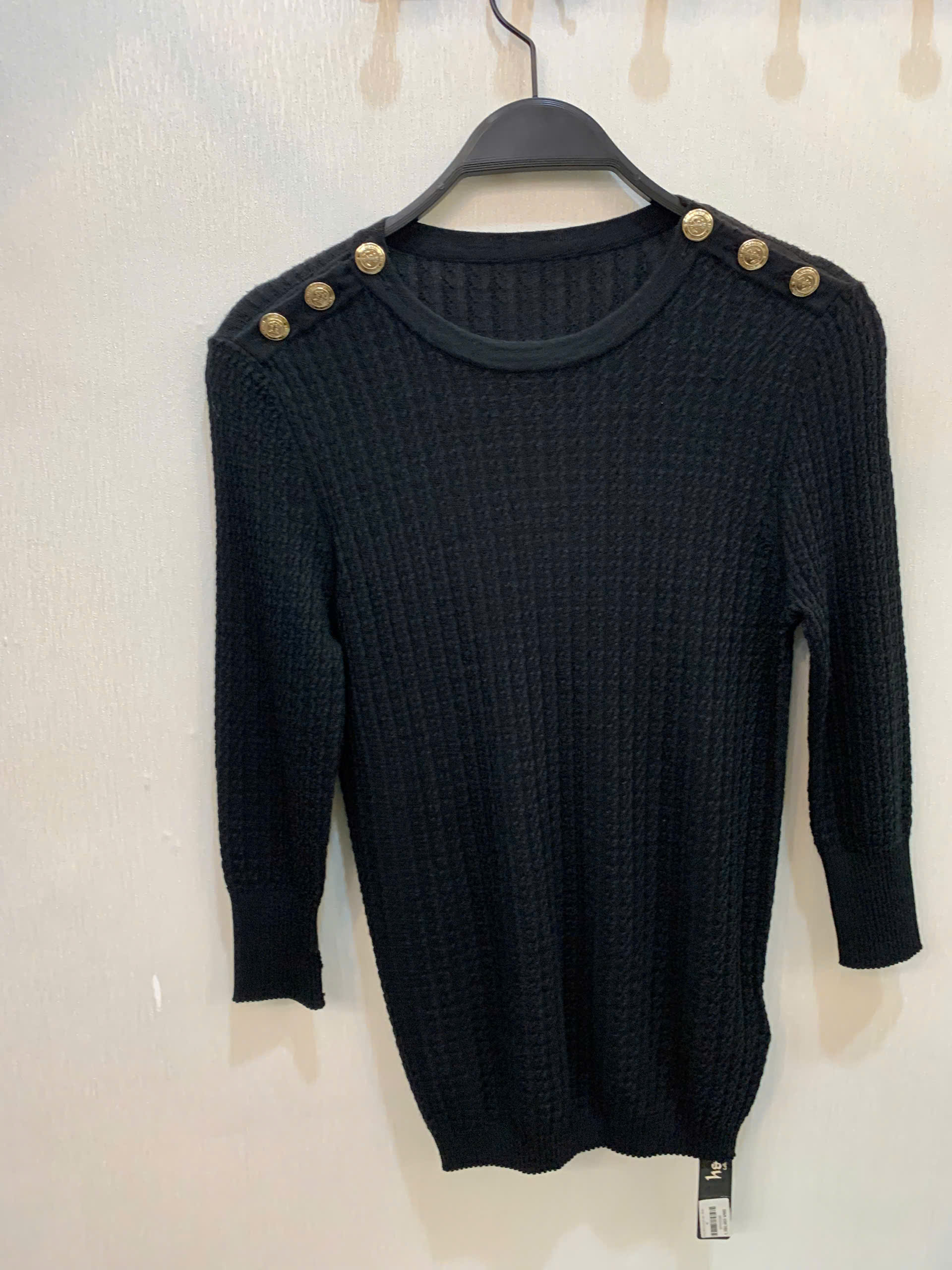 ÁO THUN ĐEN NÚT NGANG VAI