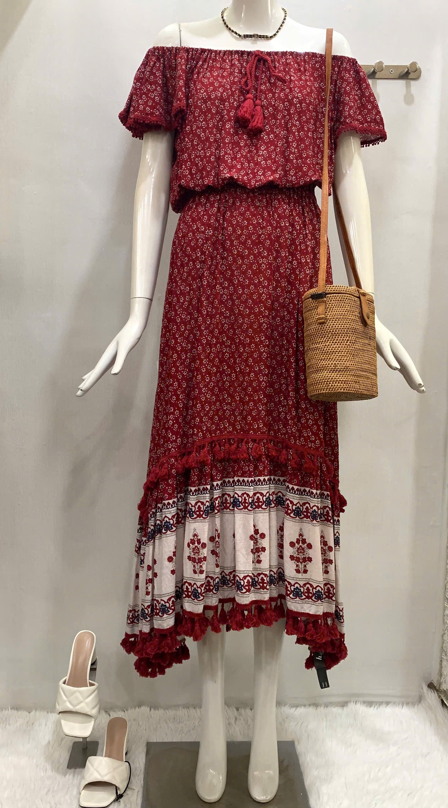 Đầm Đỏ Maxi Hoa Nhí