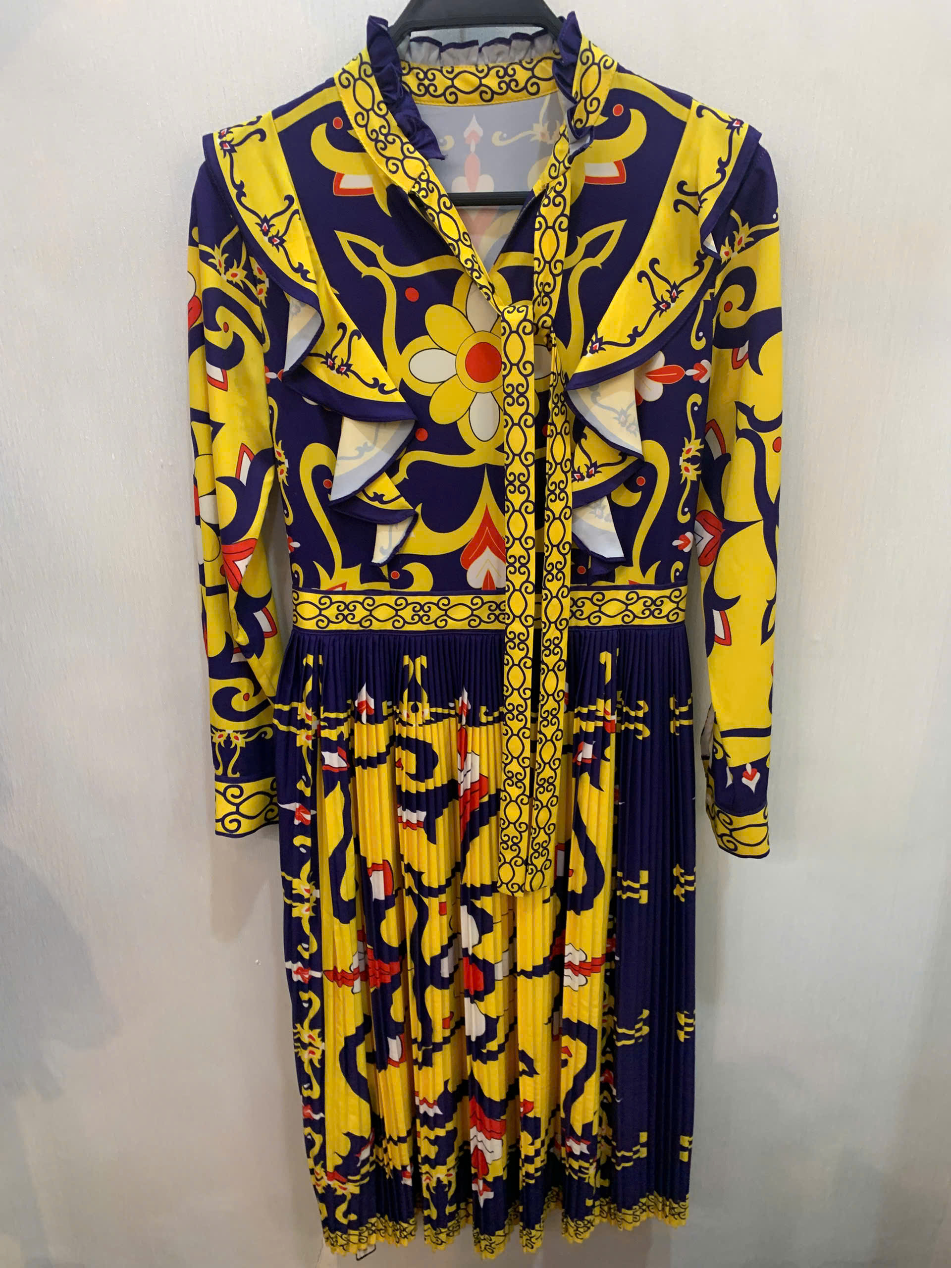 ĐẦM HỌA TIẾT DÀI TAY XANH VÀNG