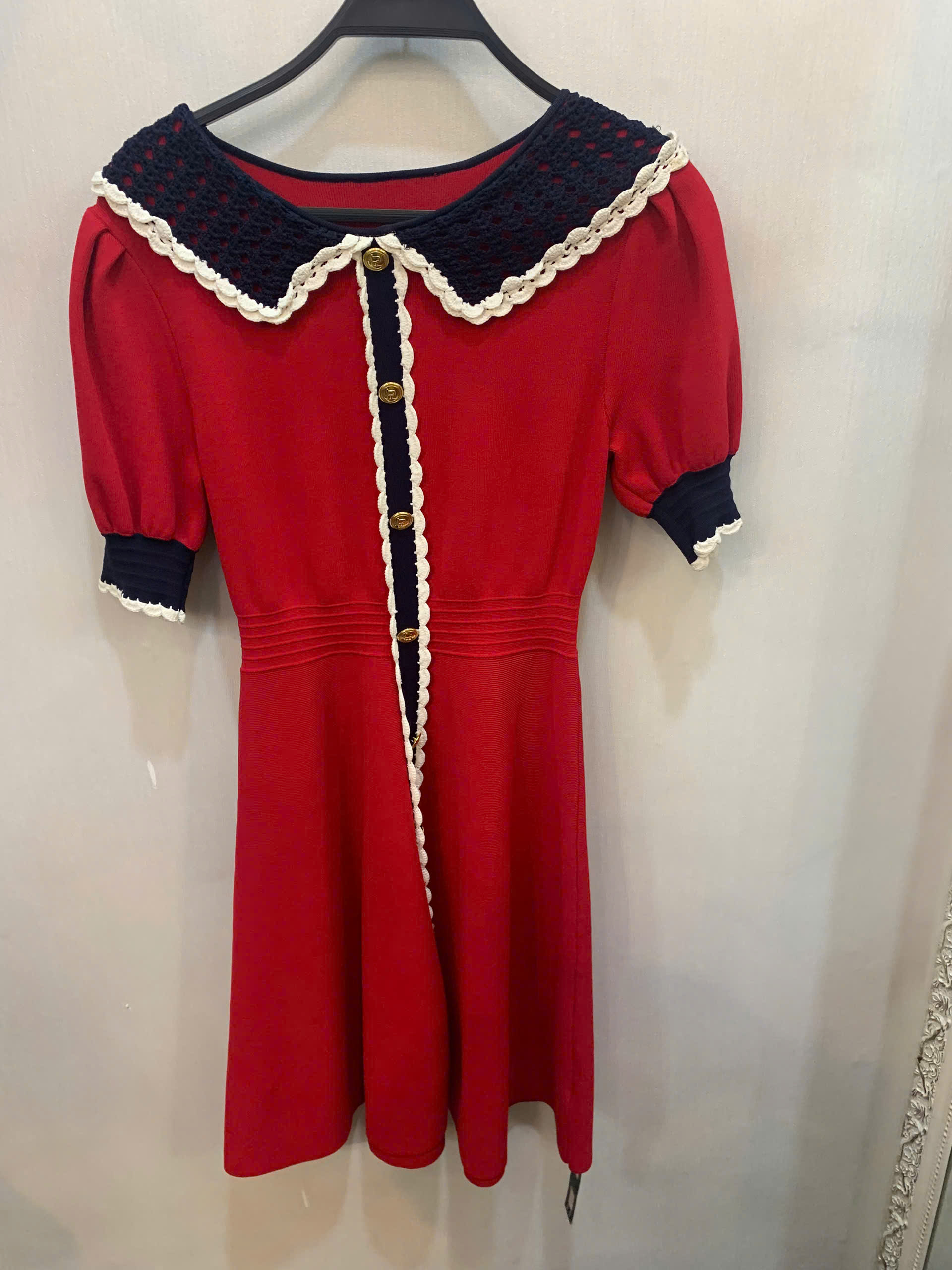 ĐẦM LEN ĐỎ CỔ ĐEN VIỀN REN TRẮNG