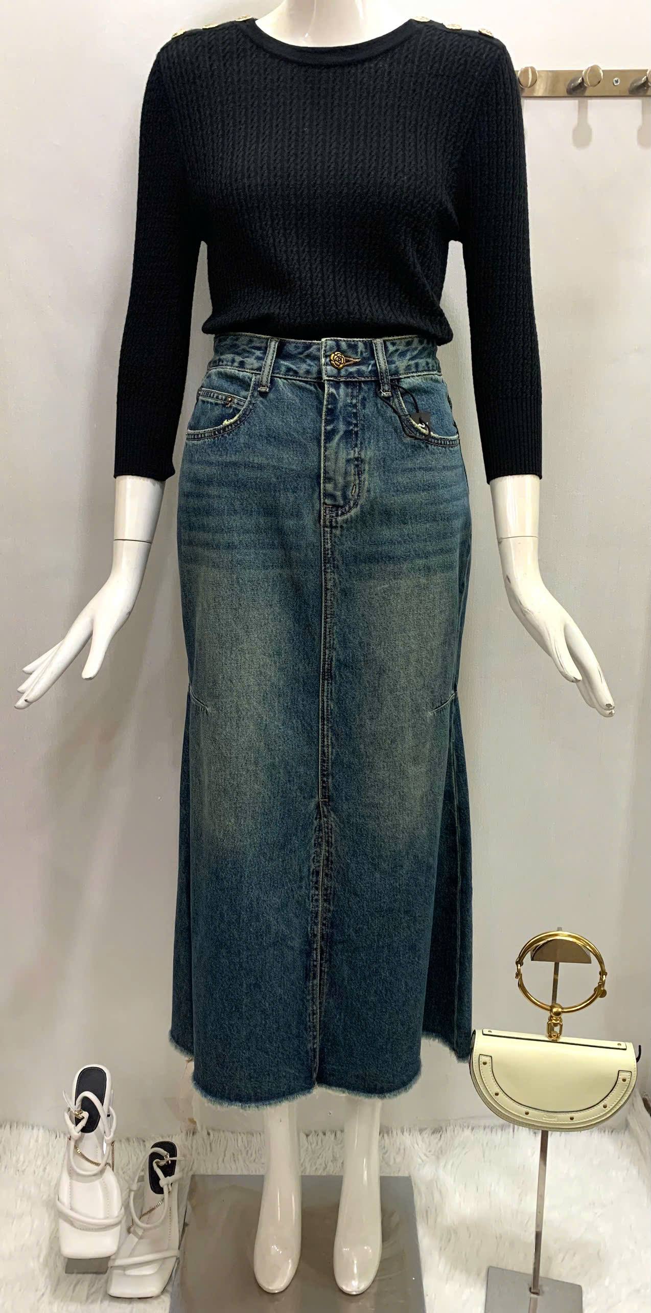 SET VÁY JEANS + ÁO TAY DÀI ĐÍNH ĐÁ VAI