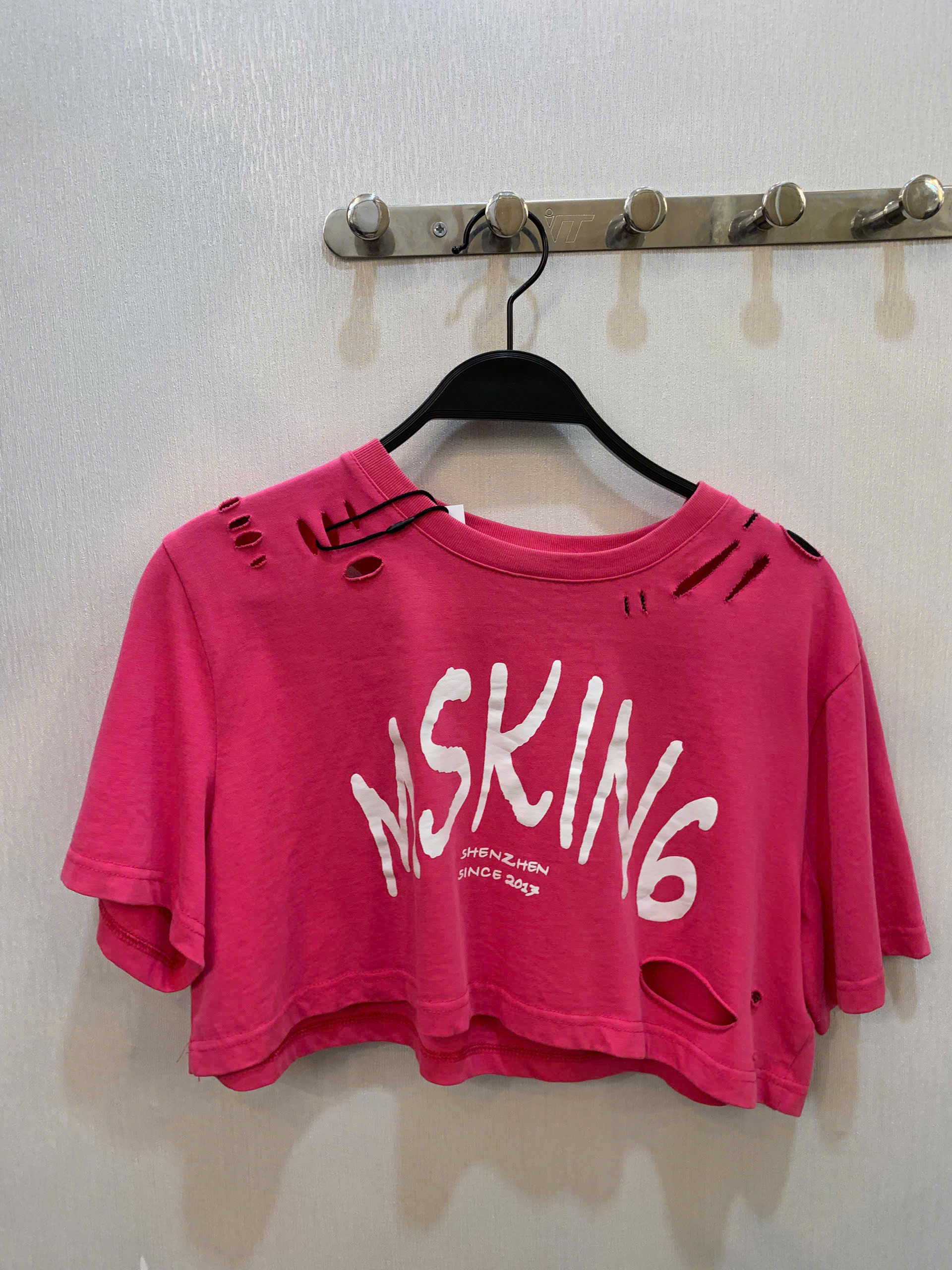 ÁO THUN HỒNG RÁCH CHỮ TRẮNG