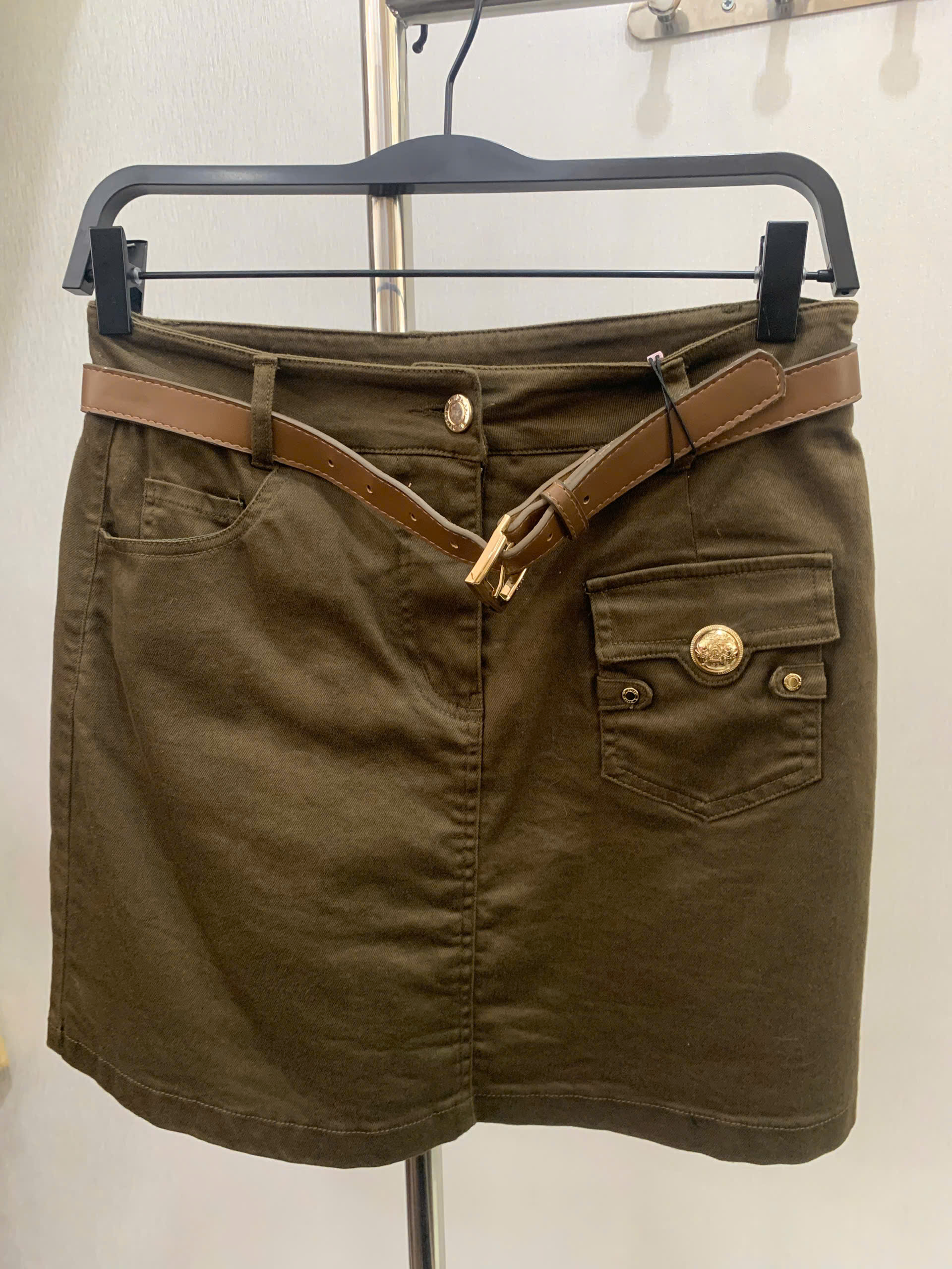 CHÂN VÁY DISUI KAKI RÊU KÈM THẮT LƯNG