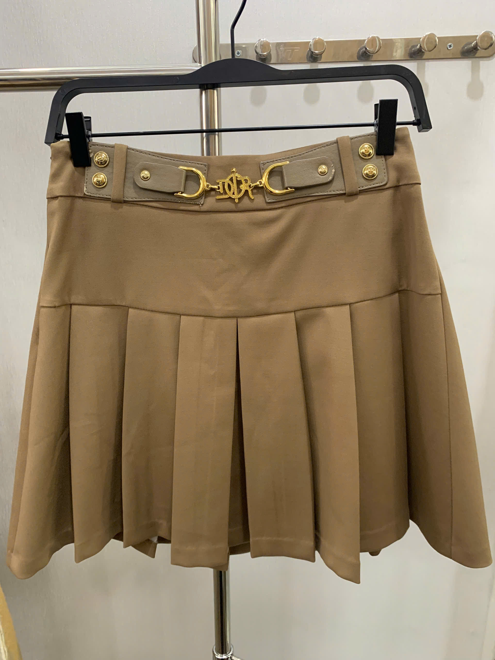CHÂN VÁY NÂU XẾP LI KHOEN VÀNG