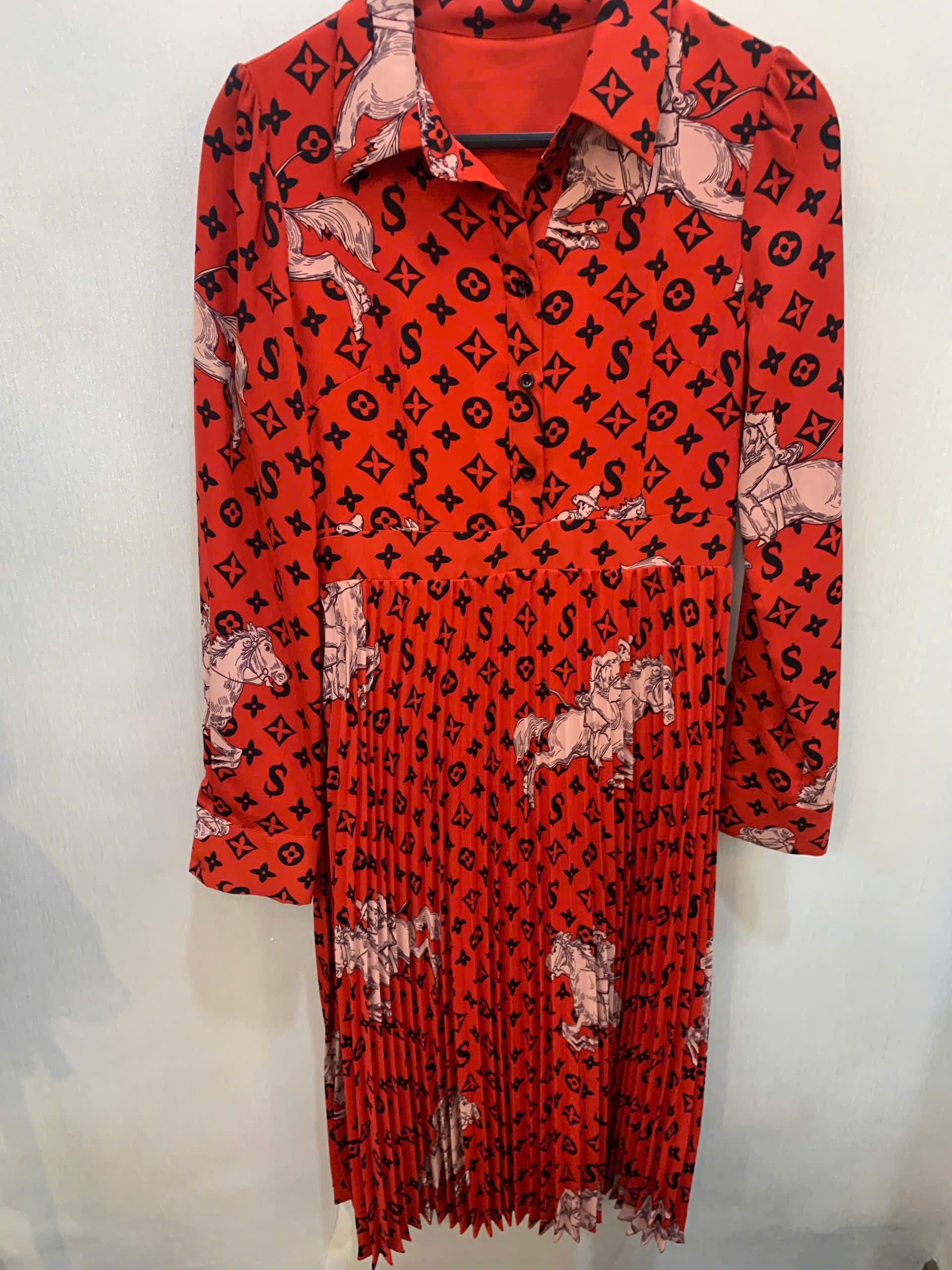 ĐẦM ĐỎ TAY DÀI LV XẾP LY